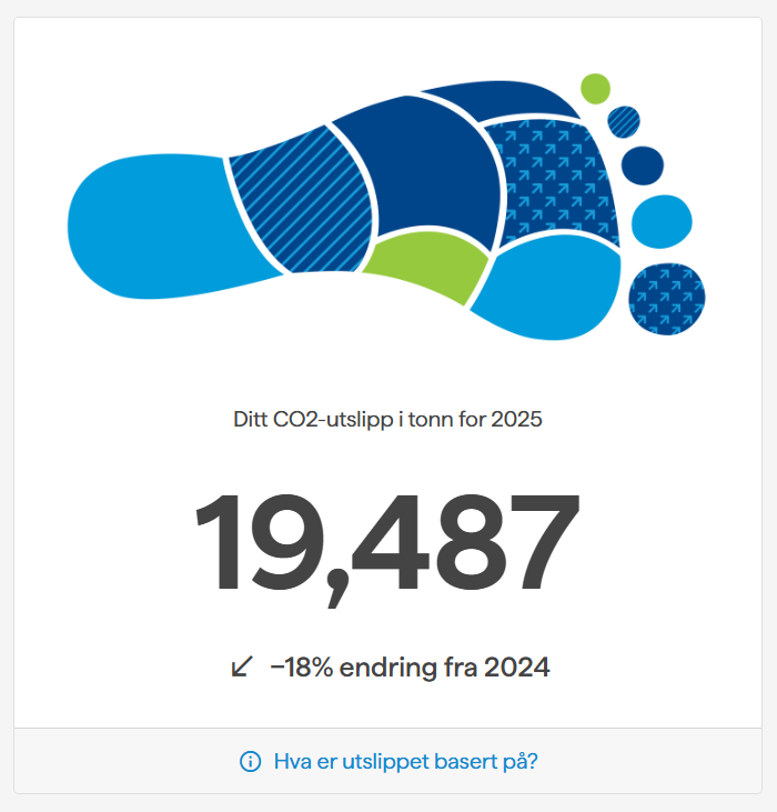 Den nyaste statistikken frå 2026 viser at utsleppet CO2 har gått ned med heile 18% samanlikna med i 2024. Flott å sjå at tiltak vi gjer får reell effekt!